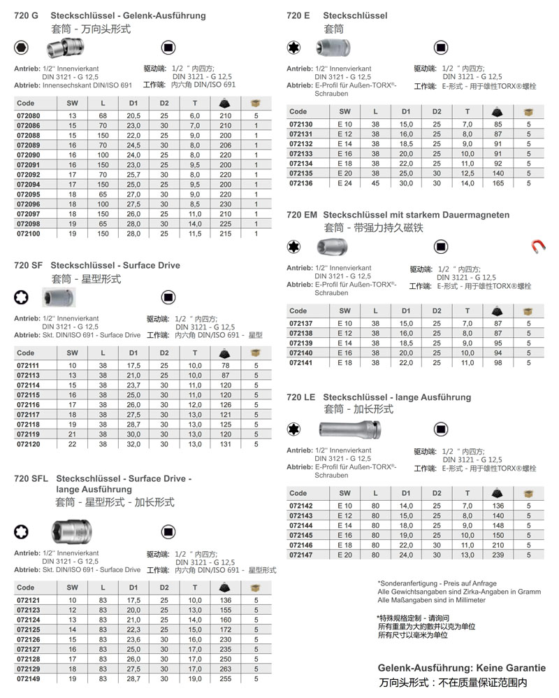 下一页:套筒 - 驱动: G 10 - 38“内四方