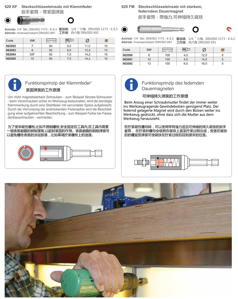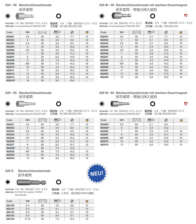 扳手套筒 - 驱动:E 6,3 - 14“外六角